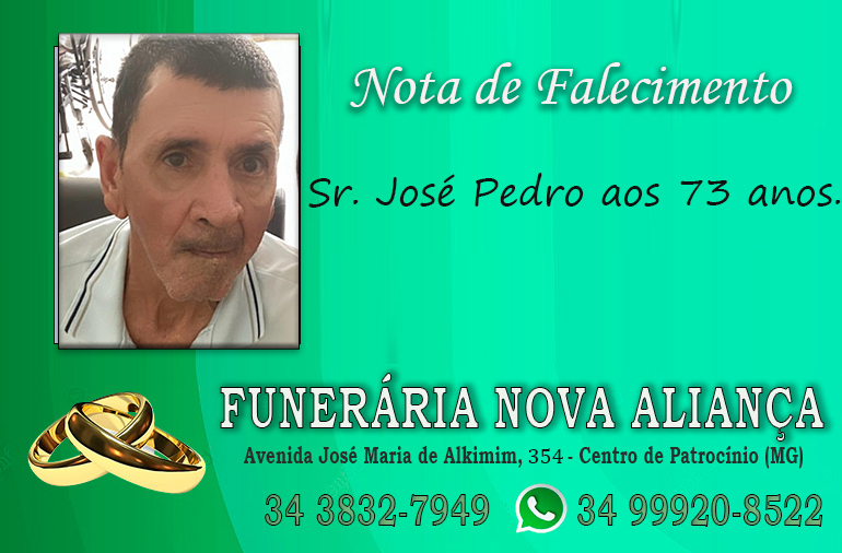 Faleceu neste sábado, 24 de janeiro de 2026, em Uberlândia/MG, o Sr. José Pedro aos 73 anos.