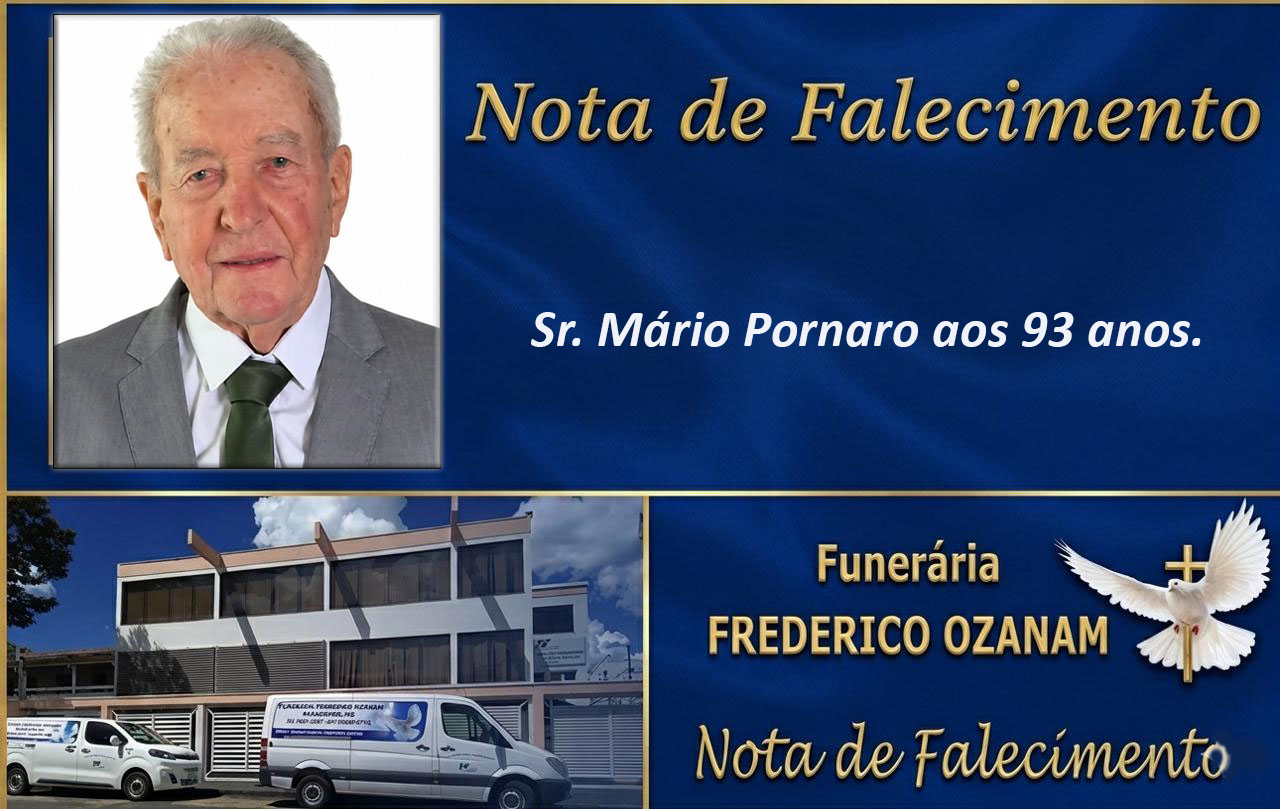 Faleceu nesta quinta-feira, 30/04/2026, em Patrocínio/MG, Sr. Mário Pornaro aos 93 anos.