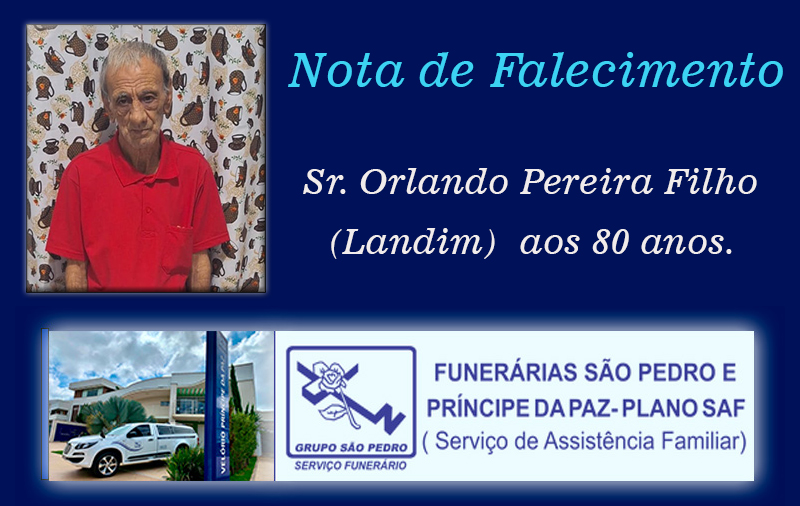 Faleceu neste sábado, 22/11, em Patrocínio (MG), Sr. Orlando Pereira Filho (Landim) aos 80 anos.