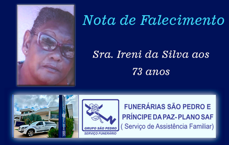 Faleceu nesta quinta-feira, 27 de novembro de 2025, em Patrocínio/MG, a Sra. Ireni da Silva aos 73 anos