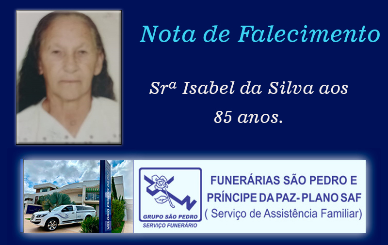 Faleceu nesta terça-feira, 4 de novembro de 2025, em Serra do Salitre/MG, a Srª Isabel da Silva aos 85 anos.