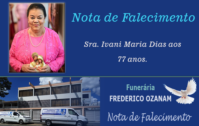 Faleceu nesta quarta-feira, 18/02/2026, em Patrocínio/MG, Sra. Ivani Maria Dias aos 77 anos.