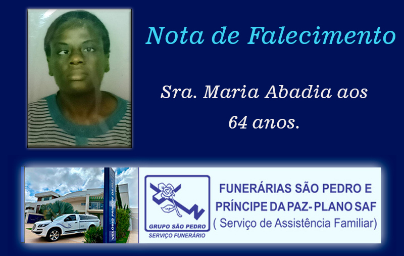 Faleceu nesta quarta-feira, 29 de outubro de 2025, em Cruzeiro da Fortaleza/MG, Sra. Maria Abadia aos 64 anos.