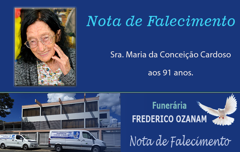 Faleceu nesta terça-feira, 14 de abril de 2026, em Patrocínio/MG, a Sra. Maria da Conceição Cardoso aos 91 anos.
