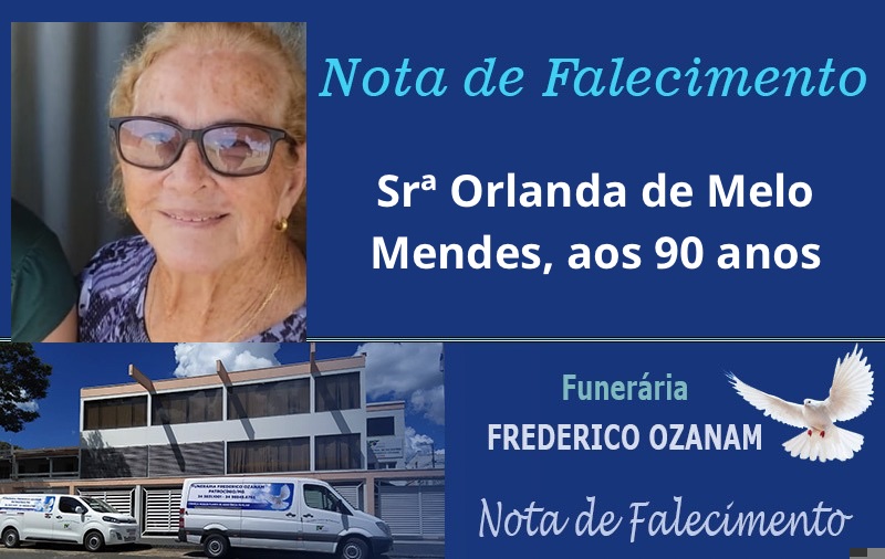 Faleceu em Patrocínio/MG Srª Orlanda de Melo Mendes, aos 90 anos, ocorrido hoje, 13 de novembro de 2025.