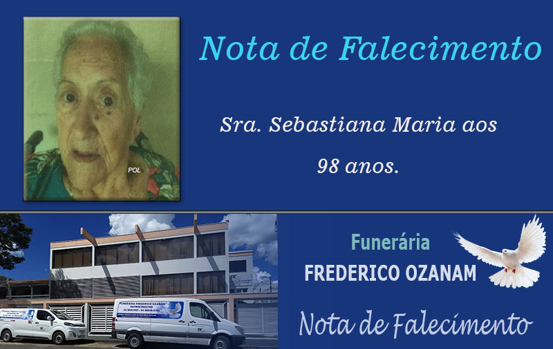 Faleceu nesta segunda-feira, 02 de março de 2026, em Patrocínio (MG), a Sra. Sebastiana Maria aos 98 anos.