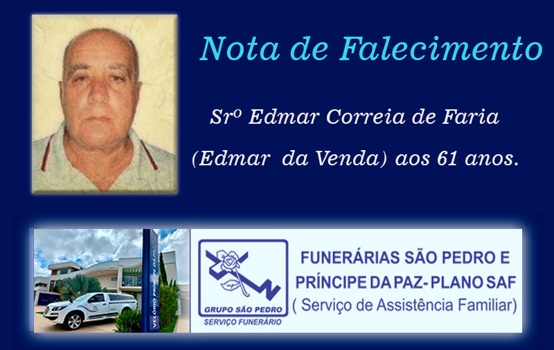 Faleceu nesta quinta-feira, 16 de outubro de 2025, em Patrocínio/MG, Sr. Edmar Correia de Faria (Edmar da Venda) aos 61 anos.