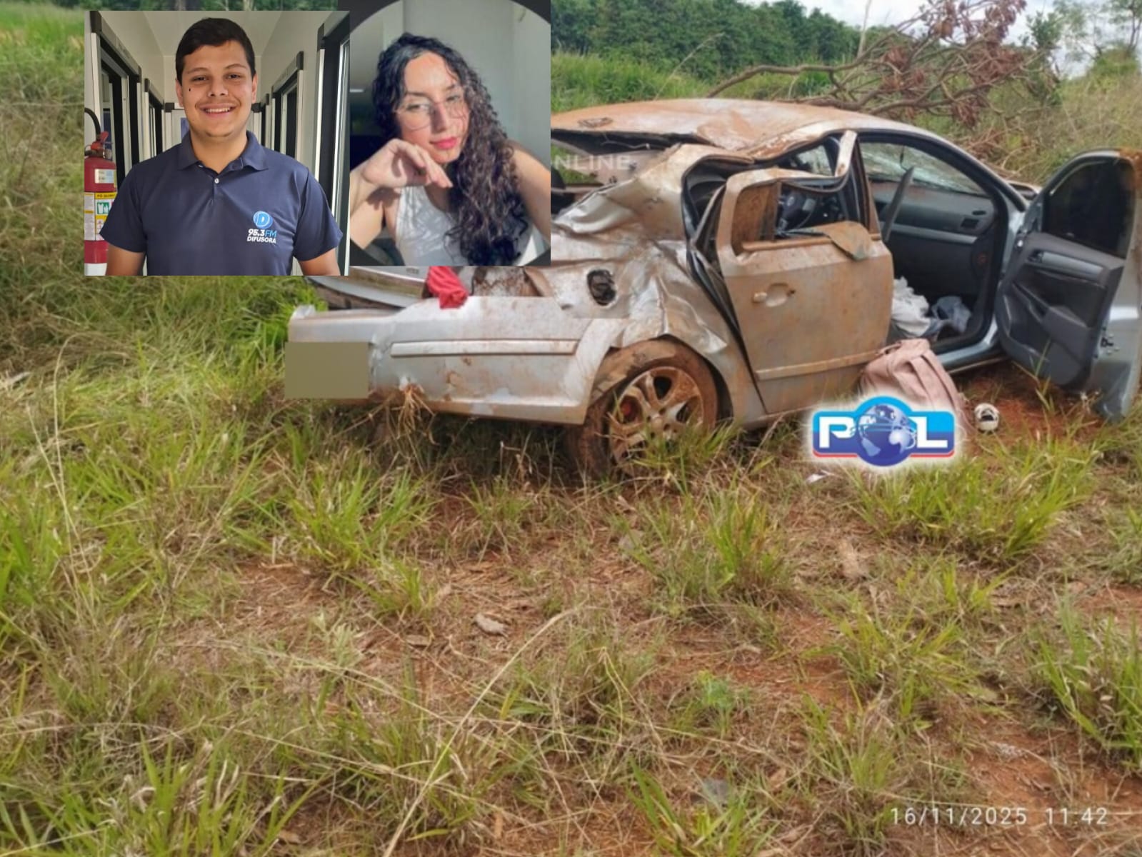 Segundo ainda a corporação, Kaio foi ejetado com o impacto nas pedras e foi parar a alguns metros fora do automóvel. Já a vítima Letícia Natiele girou dentro do carro e acabou de cabeça para baixo.