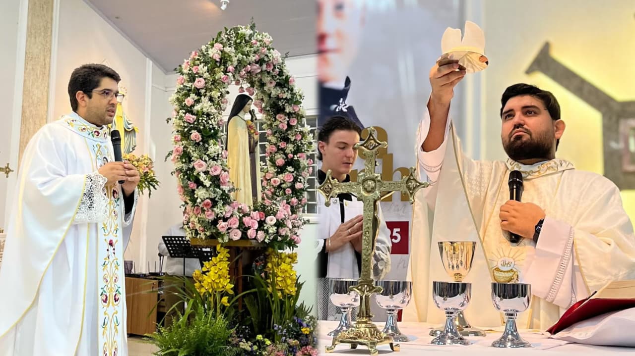 Nesta quarta-feira, 1º de outubro, a Novena das Rosas de Santa Teresinha será às 18h30min, e, às 19h00min, Santa Missa Solene presidida pelo padre Marcelo Marins, e logo após, a procissão.