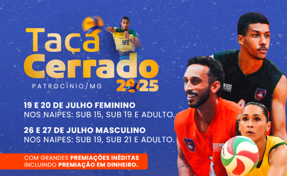 Nos dias 19, 20, 26 e 27 de julho, Patrocínio será sede da Taça Cerrado de Voleibol, evento que promete movimentar o calendário esportivo da cidade e de toda a região. A competição é organizada pelo Cerrado Vôlei Clube, em parceria com a Secretaria Municipal de Esportes e a Prefeitura de Patrocínio.