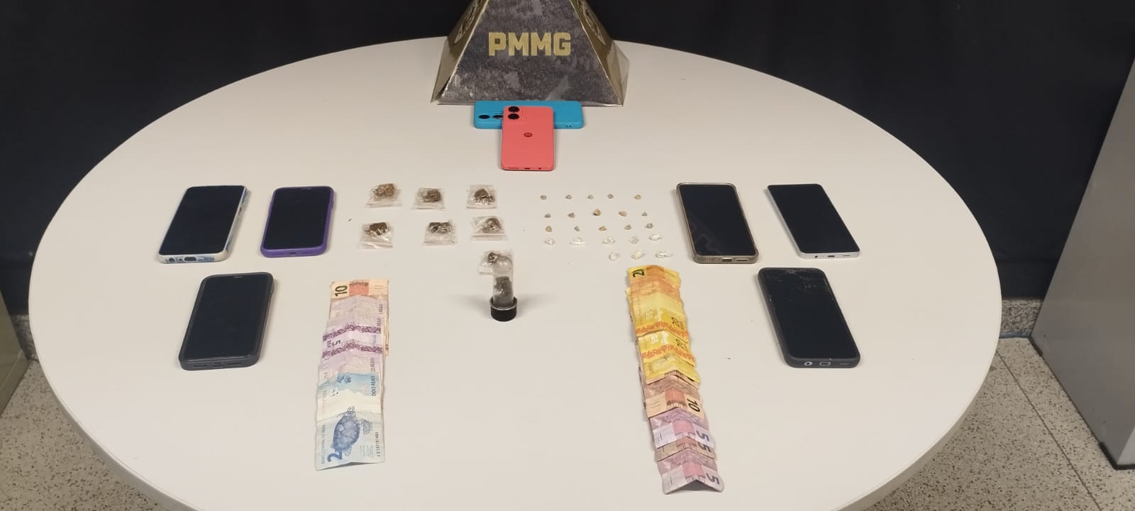 A PM, durante diligências na rodovia, abordou um veículo que retornava de Uberlândia para Patrocínio, onde foram encontradas drogas, incluindo pedras de crack e porções de maconha, além de dinheiro em espécie.