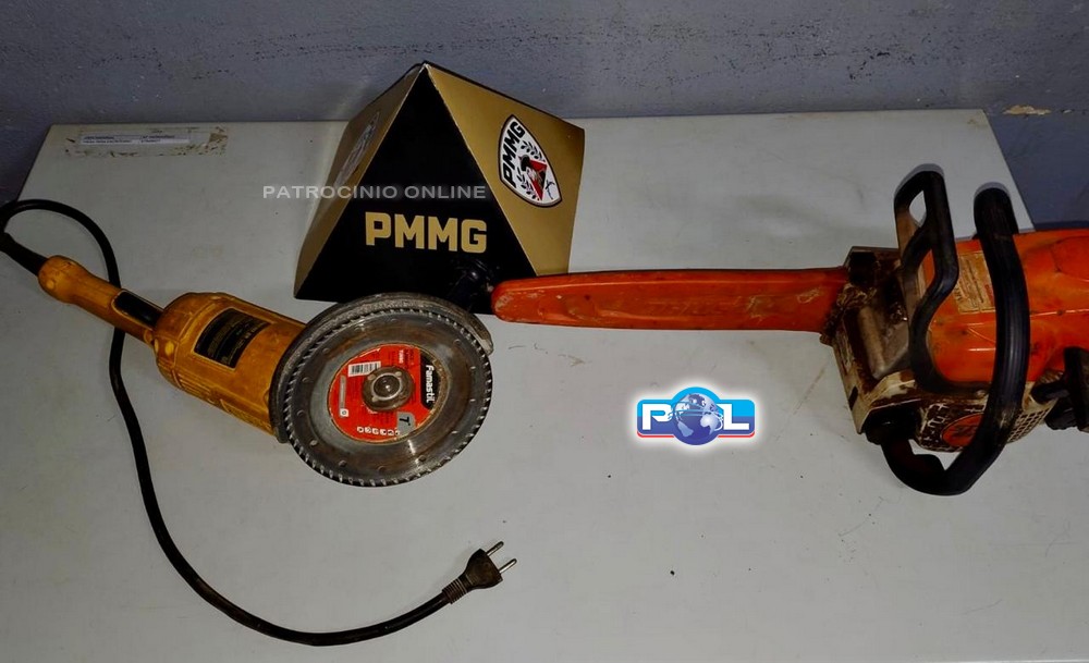 Durante as verificações, foi constatado que o automóvel estava sendo ligado por meio de chave improvisada, sem a chave original. No interior do veículo, foram encontradas uma motosserra e uma esmerilhadeira elétrica, que também foram identificadas como produtos de furto, além de outros objetos de origem desconhecida.