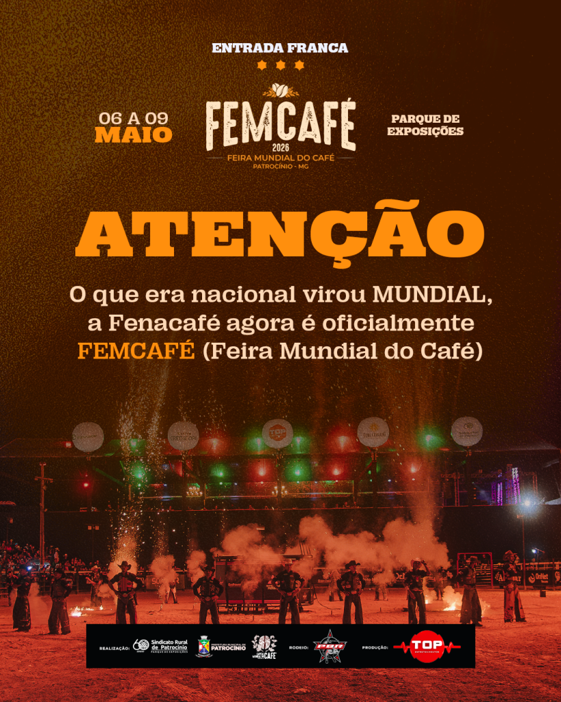 A tradicional Fenacafé, segundo a Prefeitura Municipal, passa agora a se chamar FeMcafé — Feira Mundial do Café, marcando uma nova fase do evento que acompanha o crescimento, a relevância e a dimensão que a feira alcançou ao longo dos anos. Segundo a prefeitura, o município dá um novo passo na consolidação de sua posição no cenário cafeeiro nacional e internacional. A mudança de marca representa mais do que uma atualização de nome. Reflete o protagonismo de Patrocínio, reconhecida como a Capital Mundial do Café e maior produtora e exportadora de café do mundo. LEIA AQUI