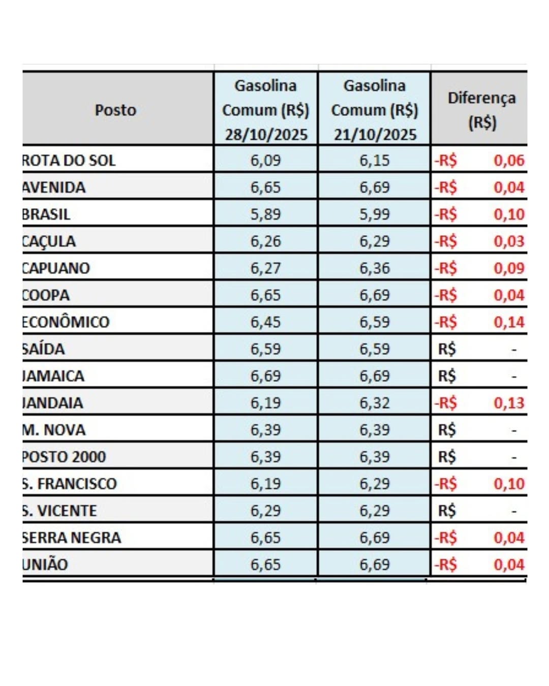 As quedas nos preços variaram de R$ 0,03 a R$ 0,14 por litro, beneficiando diretamente os motoristas e reforçando a economia local. Entre os postos que ajustaram os preços estão Posto Econômico, Brasil, Capuano, Jandaia e São Francisco.