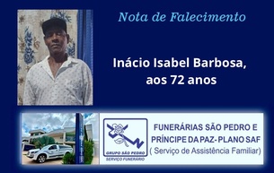 Nota de falecimento: Inácio Isabel Barbosa, aos 72 anos