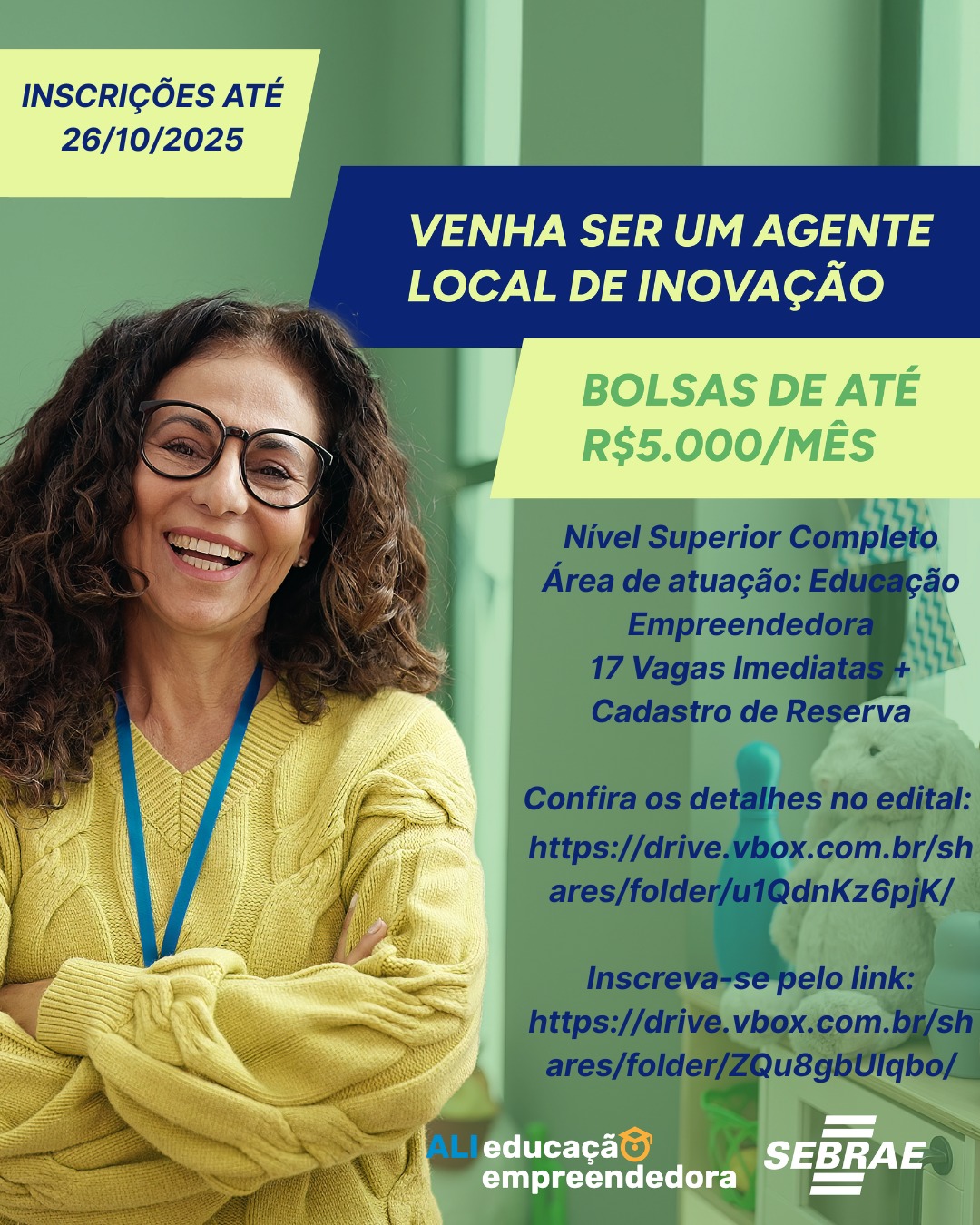 Mais informações sobre o Programa ALI: https://sebrae.com.br/sites/PortalSebrae/agentelocaldeinovacao.