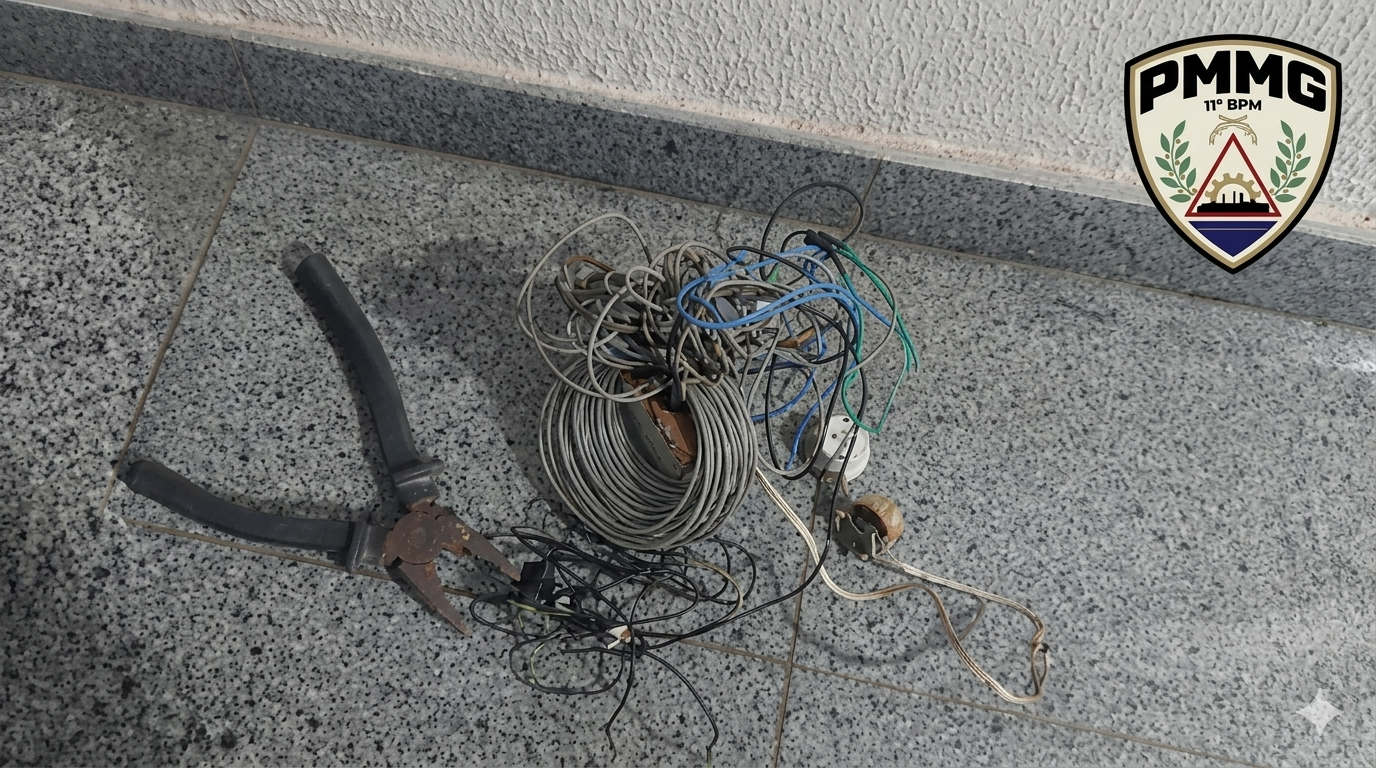 Na madrugada de 20 de março de 2026, por volta de 01h05, uma guarnição policial compareceu à rua Sete de Setembro, no bairro Pacaembu, em Uberlândia, após ser acionada via COPOM para verificar uma ocorrência de furto a residência. No local, um suspeito de 24 anos foi localizado nos fundos do imóvel portando uma mochila que continha grande quantidade de fios de cobre. Diante dos fatos, o suspeito foi preso em flagrante por furto e encaminhado à Delegacia de Plantão, juntamente com os materiais apreendidos para as devidas providências.