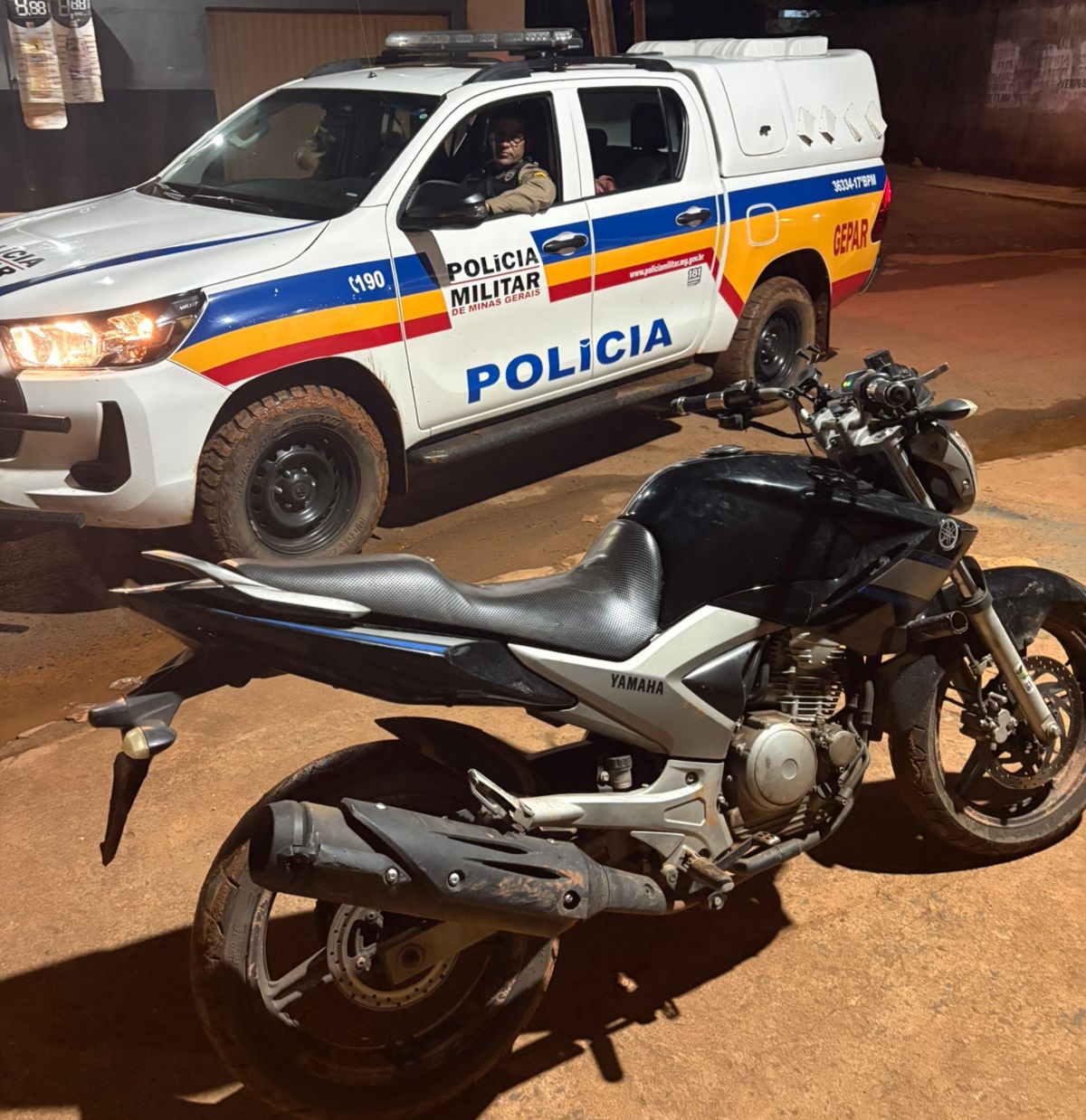 Na noite de 19 de março de 2026, por volta das 23h13, uma vítima de 33 anos compareceu ao 17º Batalhão para registrar o furto de sua motocicleta Yamaha/Fazer 250, de cor preta, que havia sido deixada estacionada na rua Niterói, no bairro Tibery, em Uberlândia. Durante o registro da ocorrência, informações do COPOM indicaram a presença de indivíduos em atitude suspeita manipulando a placa de um veículo em uma área de assentamento. A guarnição deslocou-se imediatamente à rua Jatobá, no assentamento Santa Clara, onde localizou a motocicleta subtraída. Ao perceberem a presença policial, um dos suspeitos conseguiu fugir. O segundo suspeito, de 25 anos, foi abordado pelos militares, sendo encontrada em sua posse a placa do veículo furtado. Diante dos fatos, o suspeito foi preso em flagrante e encaminhado à Delegacia de Plantão. O veículo foi recuperado e restituído ao proprietário.