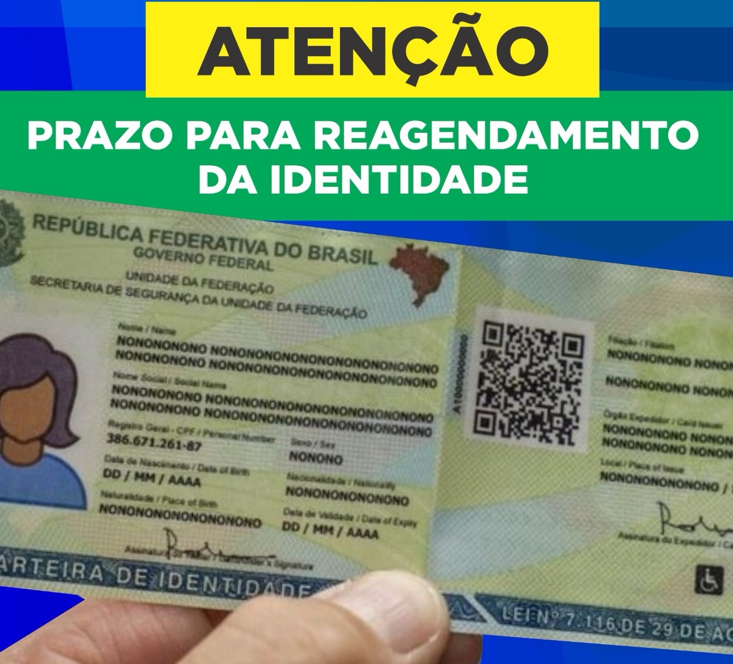 A Prefeitura Municipal informa, por meio da SESTRAN, que os cidadãos que realizaram o protocolo online para emissão da carteira de identidade e não conseguiram concluir o atendimento na data prevista devem procurar a unidade até o dia 6 de março, às 17h, para efetuar o reagendamento.