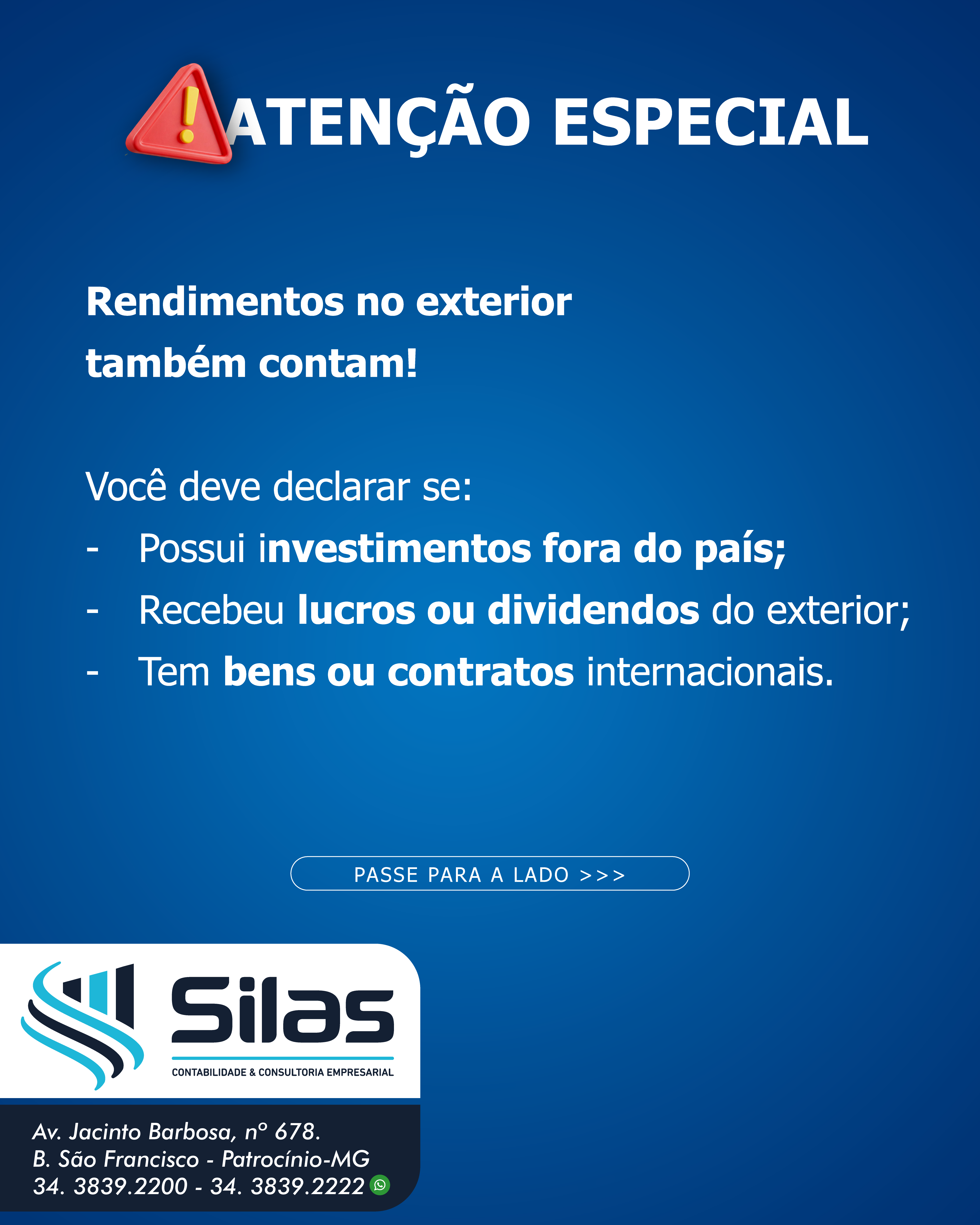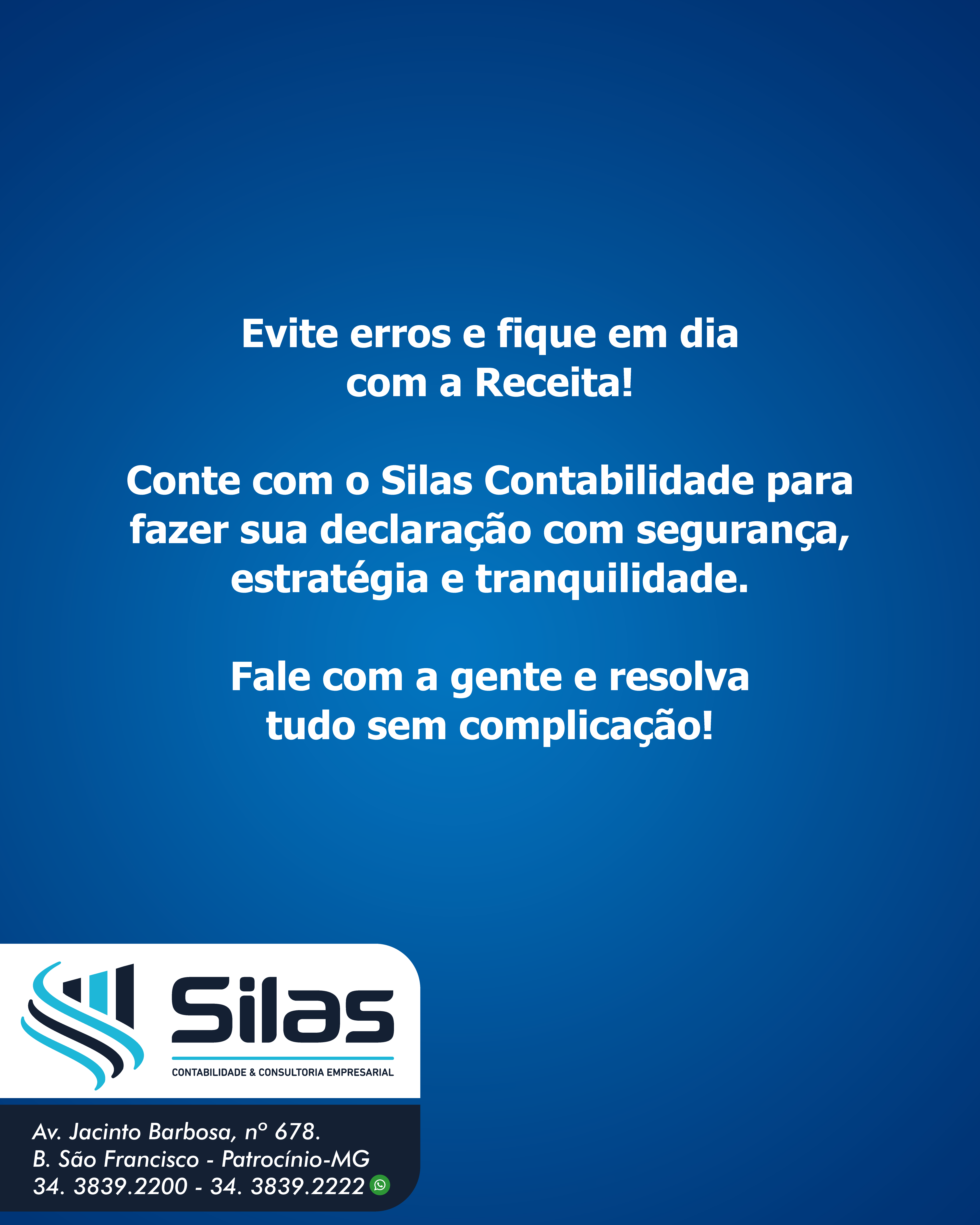Conte com o Silas Contabilidade para fazer sua declaração com segurança, estratégia e tranquilidade.