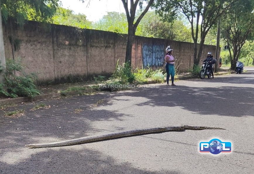 Ao chegarem ao local, os bombeiros da guarnição de salvamento constataram que se tratava de uma sucuri, que estava na calçada, aparentemente sem ferimentos.