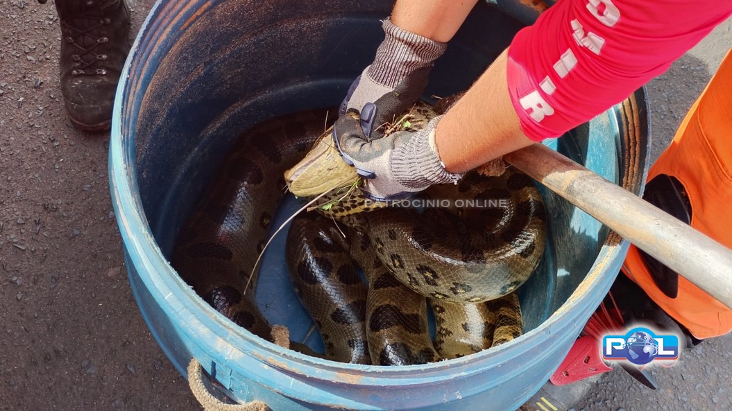 A serpente é adulta e possui aproximadamente 3 metros, conforme avaliação inicial.