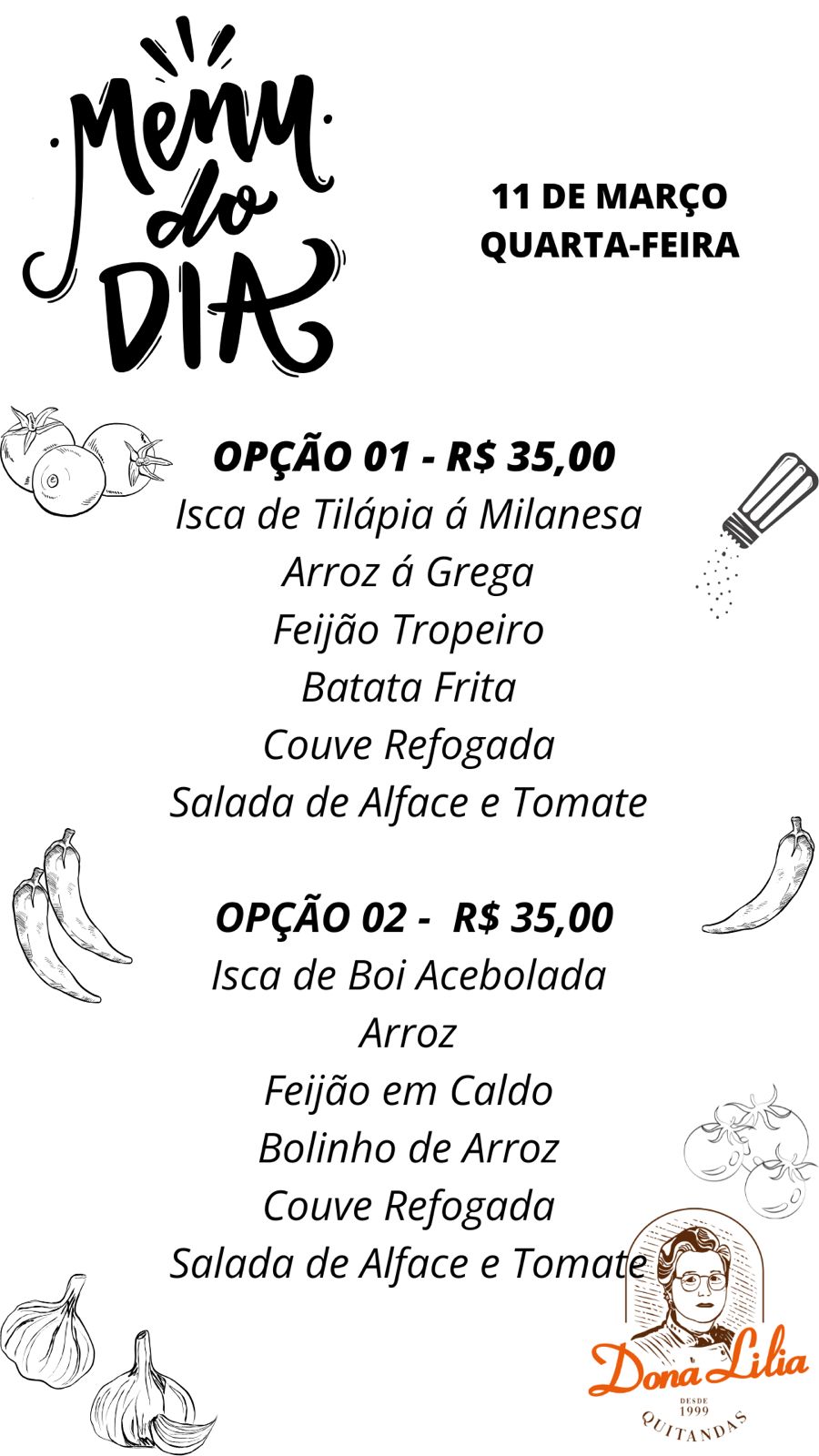 Tá na hora do almoço! Vem almoçar com a gente aqui na Dona Lília!
