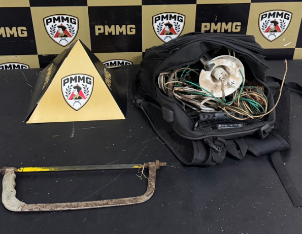 Durante patrulhamento no dia 22 de março de 2026, às 04h02, a polícia recebeu informações sobre furto de cabos na Rua Jorge Martins Pinto, bairro Santa Mônica. Um suspeito de 32 anos foi abordado no local portando uma serra e materiais compatíveis com o delito. Ele foi preso em flagrante e encaminhado à Delegacia de Plantão.