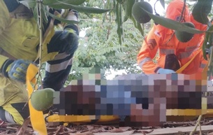 Homem sofre forte e tem várias queimaduras ao levar choque após subir em telhado para apanhar mangas e encostar em rede elétrica