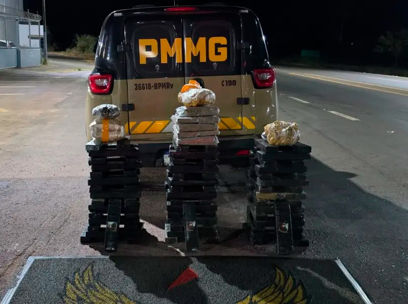 No interior deste foram localizadas 102 barras de maconha e seis pacotes de maconha colombian gold. O veículo foi apreendido e a droga encaminhada para a delegacia de Polícia Civil de Patos de Minas.