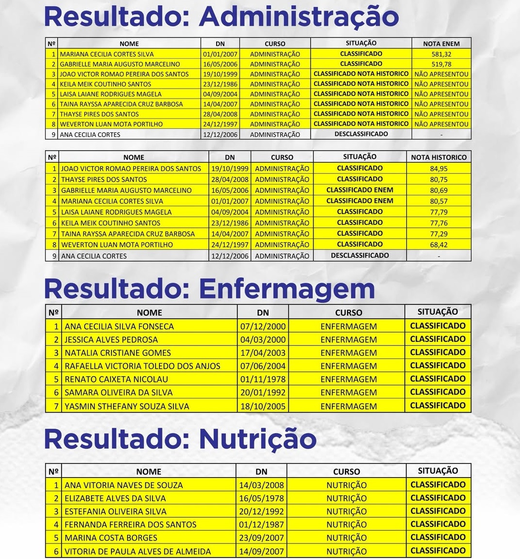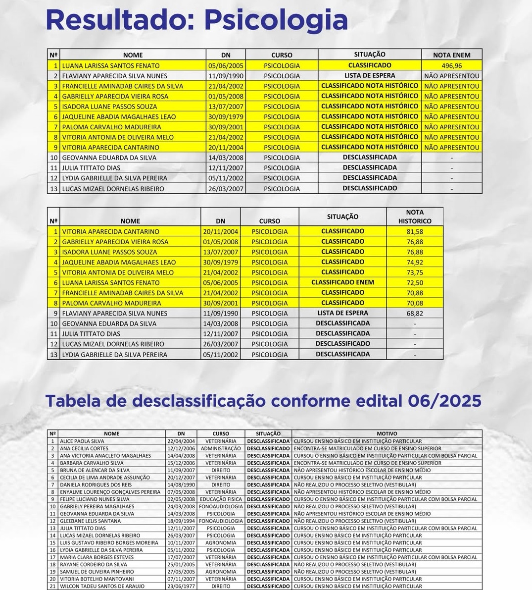 A lista completa de classificados, lista de espera e desclassificados pode ser consultada no site oficial do município, conforme o cronograma do programa.