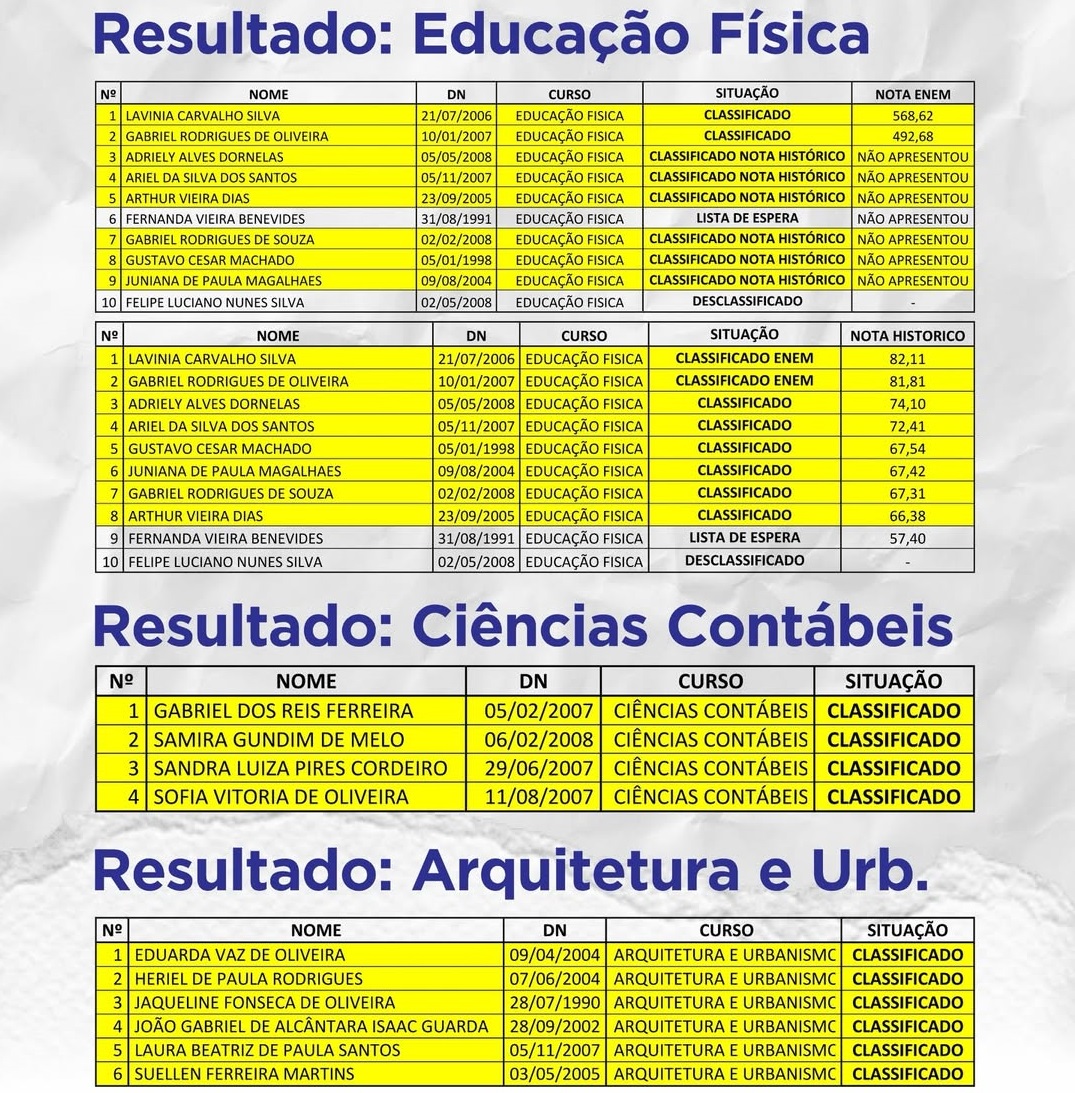 Nesta edição, foram ofertadas 112 bolsas integrais, distribuídas em 14 cursos de graduação, em parceria com o UNICERP e a FUNCECP.