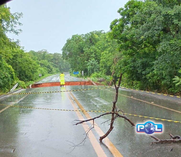 Apesar da remoção da árvore, a interdição permanece, em razão dos danos estruturais causados pelo rompimento do bueiro e pelo comprometimento da ponte, representando risco à segurança dos usuários da rodovia.
