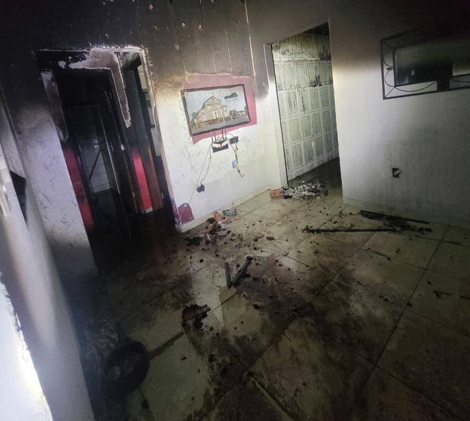 O fogo destruiu móveis e causou danos estruturais à residência.