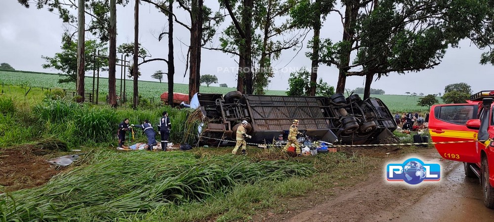 O trágico acidente aconteceu na manhã desta terça-feira 6/1, no km 378 da BR-365, nas proximidades do Café Patense. Um ônibus de excursão, com dezenas de passageiros, saiu da pista, capotou e colidiu contra árvores às margens da rodovia.