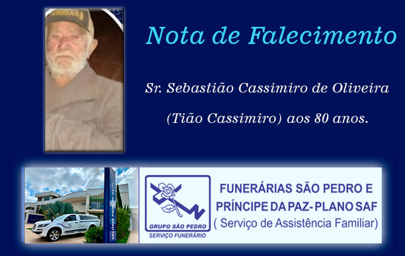 Faleceu nesta segunda-feira, 1/12, em Patos de Minas (MG) – Sr. Sebastião Cassimiro de Oliveira (Tião Cassimiro) aos 80 anos.