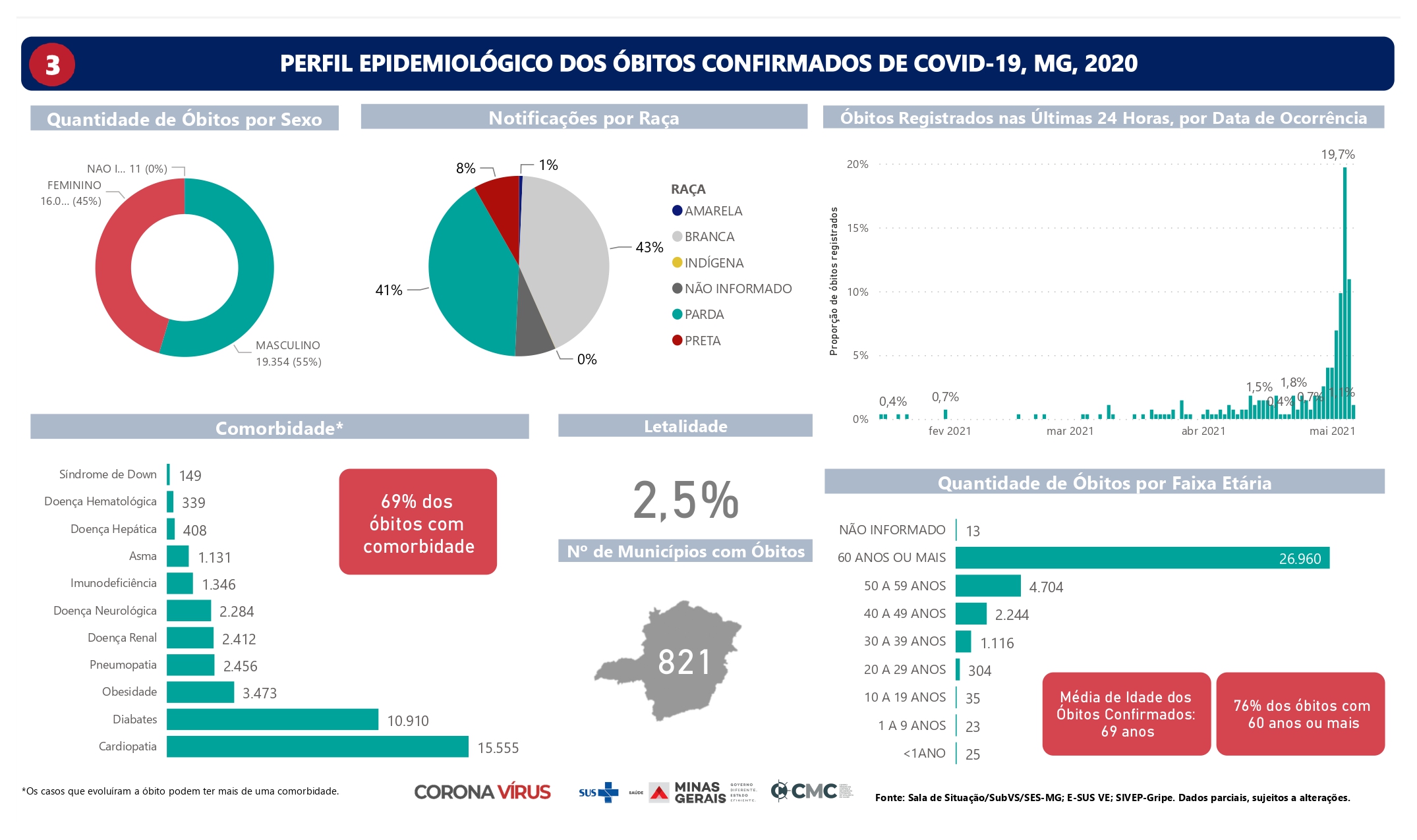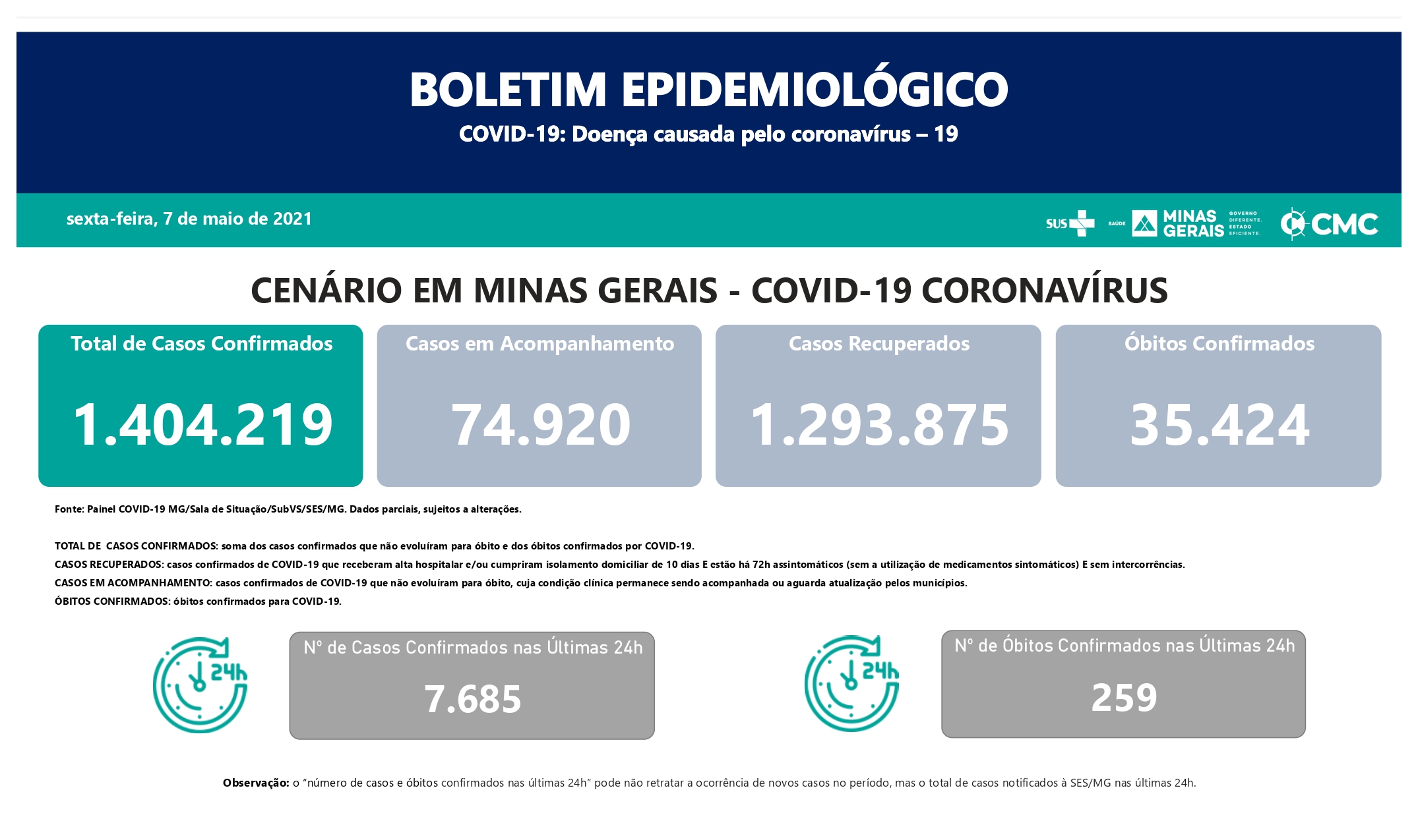Estão confirmados 35.424 óbitos, sendo 259 nas últimas 24 horas.