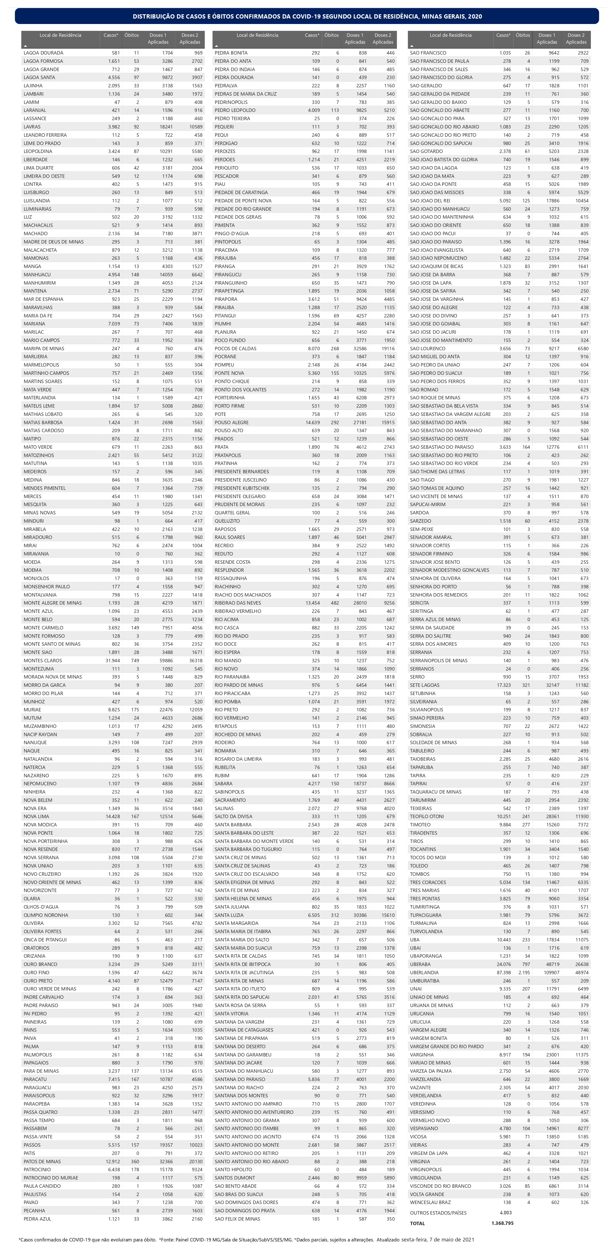 - 210 milhões da Fiocruz e Oxford/AstraZeneca (100 milhões em processo de entrega e 110 milhões para entrega no 2º semestre, sendo 50 milhões de IFA importado e 60 milhões com IFA nacional)