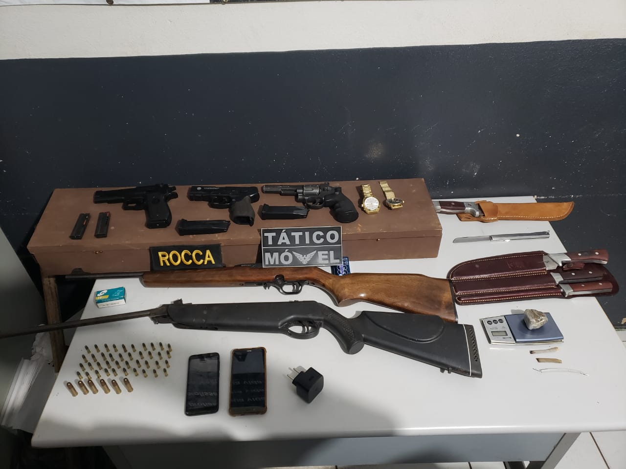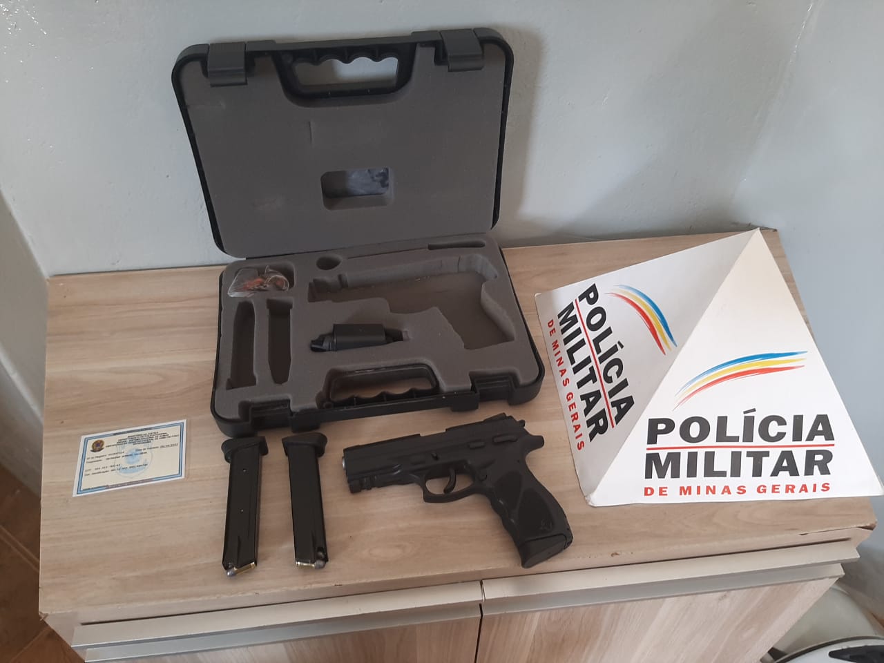 A arma de fogo, uma pistola .380 foi localizada e apreendida juntamente com munições. O autor foi preso e conduzido à Delegacia de Polícia Civil de Araxá.