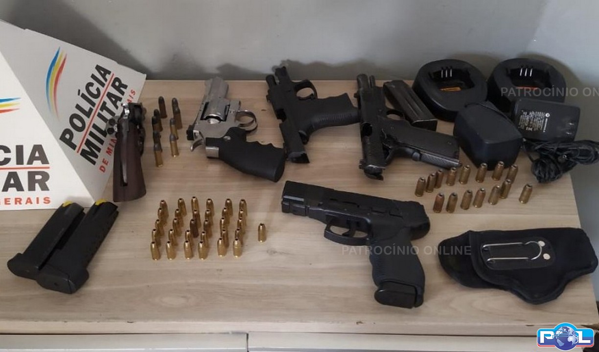 As informações foram repassadas às guarnições policiais que realizaram a abordagem dos veículos na Avenida Senador Montandon, ocasião em que foram localizadas 03 armas de fogo, sendo 02 armas em situação regular e um revólver calibre 38 sem registro, além de 01 arma de pressão, 01 simulacro de pistola e munições diversas.