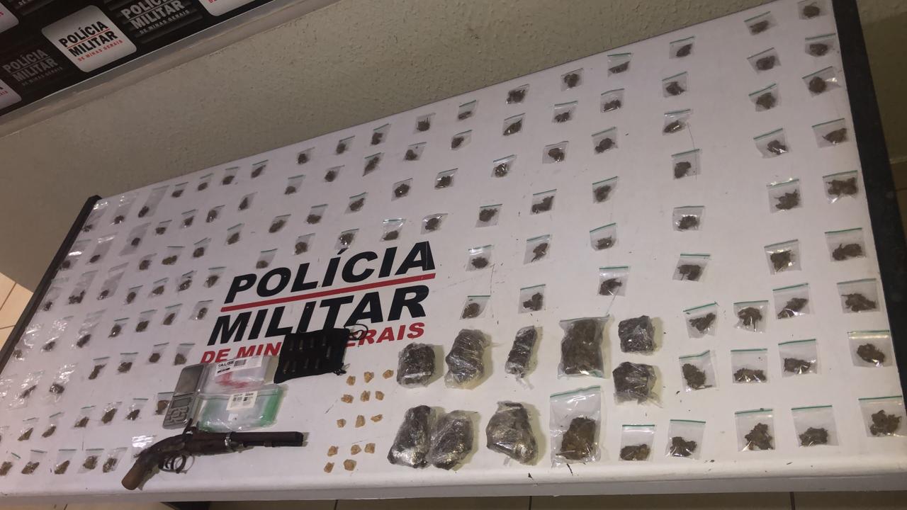 A PM durante buscas próximas ao local da abordagem, encontrou mais 12 pedras de crack e ainda durante varredura localizou 134 porções de maconha, nove munições calibre 22, uma balança de precisão e uma arma de fogo.