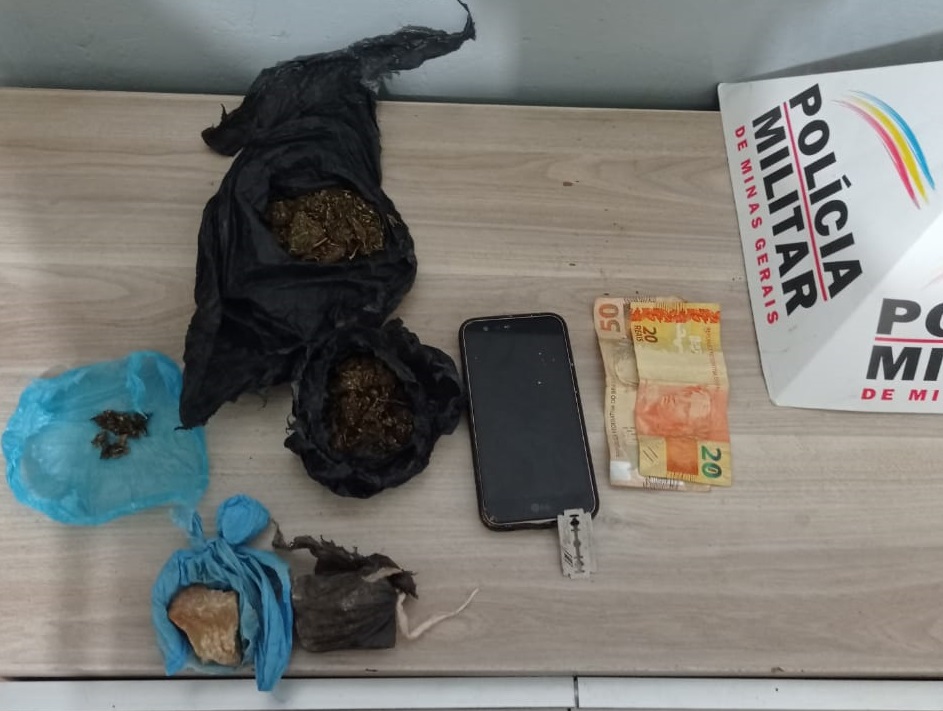 Os militares visualizaram ainda que o homem entregou algo embrulhado em um plástico para um usuário que saiu do local deslocando pela Rua Caetés sentido a Rua Camargos, e abordaram aproximadamente 100 metros do local.