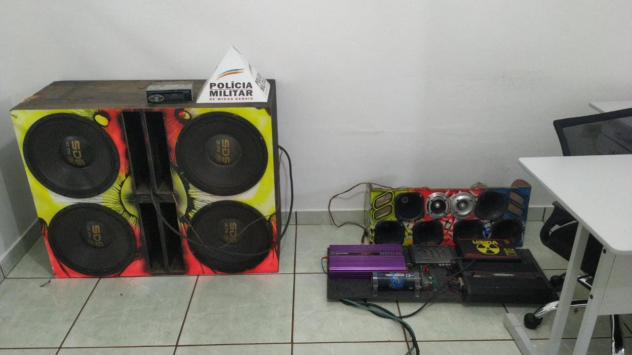 Foram apreendidas 06 cornetas das marcas “booster” e “selenium”; 02 tweeter das marcas “ultravox” e “selenium”; 04 alto-falantes de 15 polegadas da marca “eros sds 2.7k”; 01 porta modulo em madeira, 02 potências das marcas “pyramid 800w” e “sound digital 8000w”; 01 mega capacitor marca “booster”; 01 crossover marca “hurricane”; 01 fonte de energia marca “usina 120ª” e 01 aparelho de som marca “pioneer”.