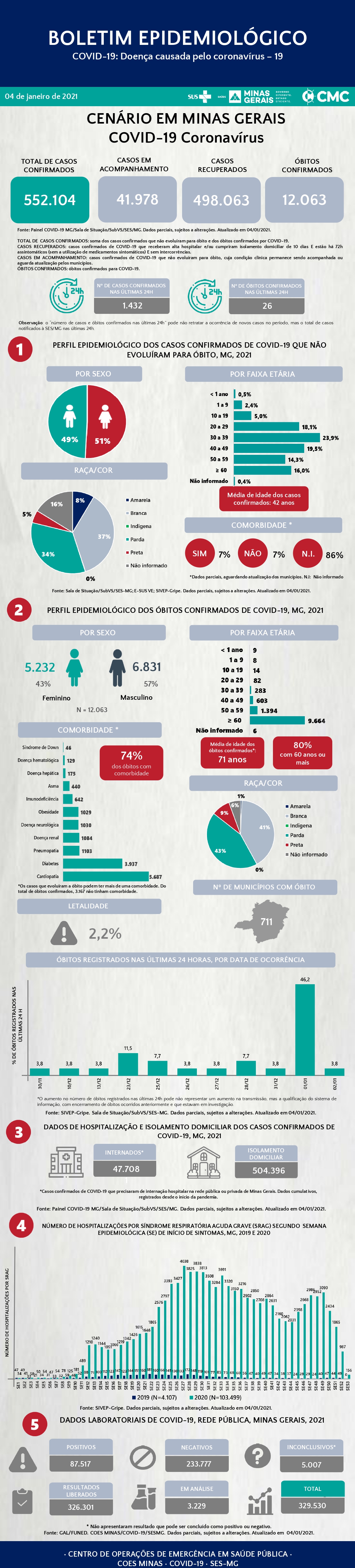 Até o momento foram 552.104 casos confirmados, sendo 1.432 nas últimas 24 horas