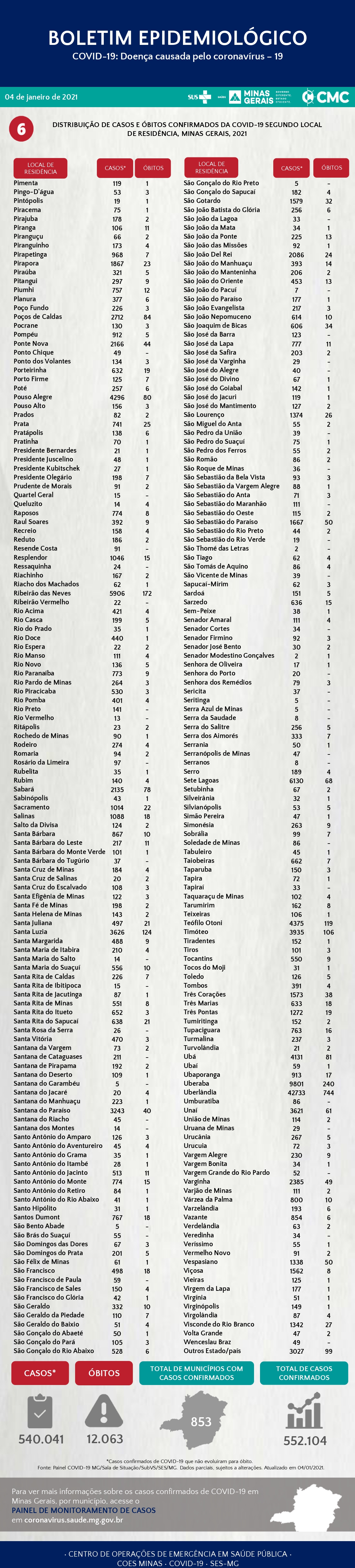 Estão em acompanhamento 41.978 casos e são 498.063 casos recuperados.