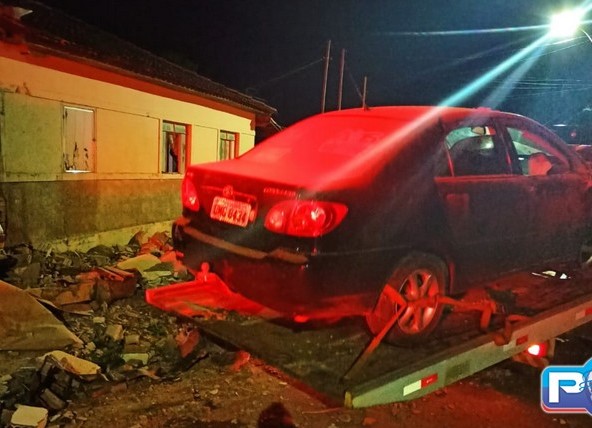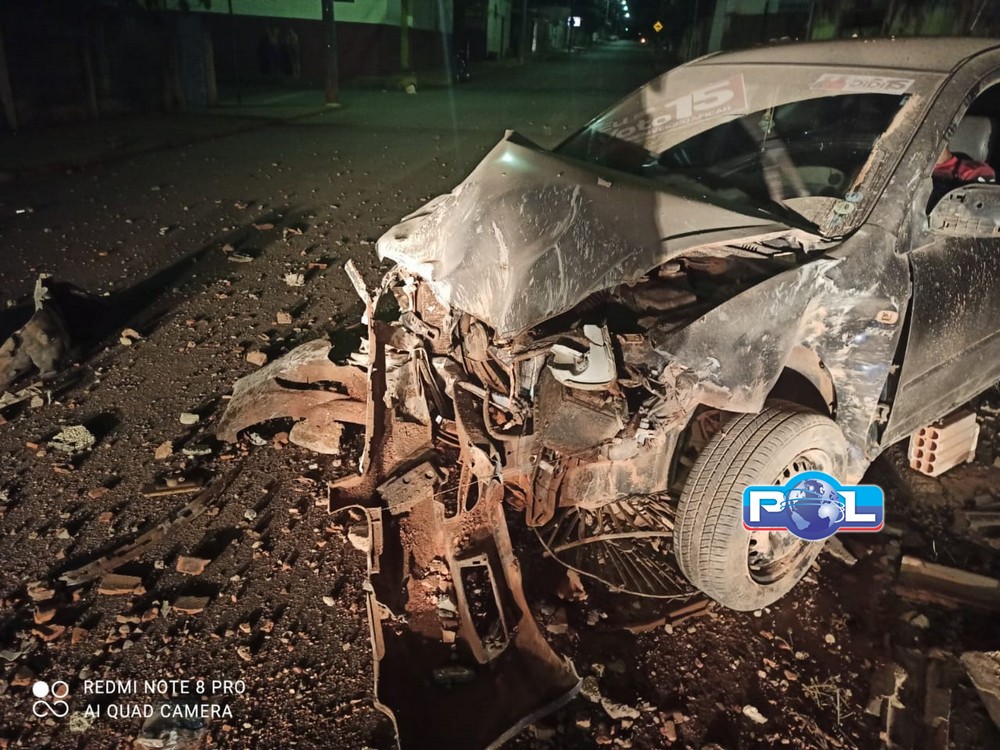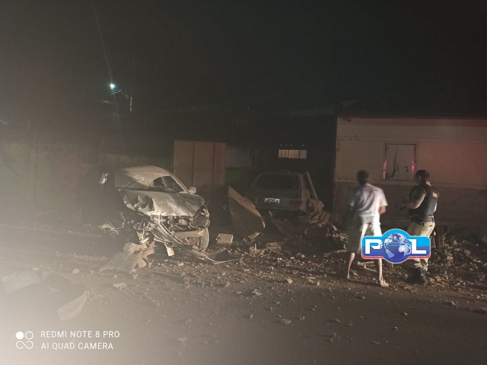 O veículo evadiu em alta velocidade e em seguida chocou contra os muros de duas residências e ainda causando danos em um Ford Del Rey que estava estacionado na garagem.
