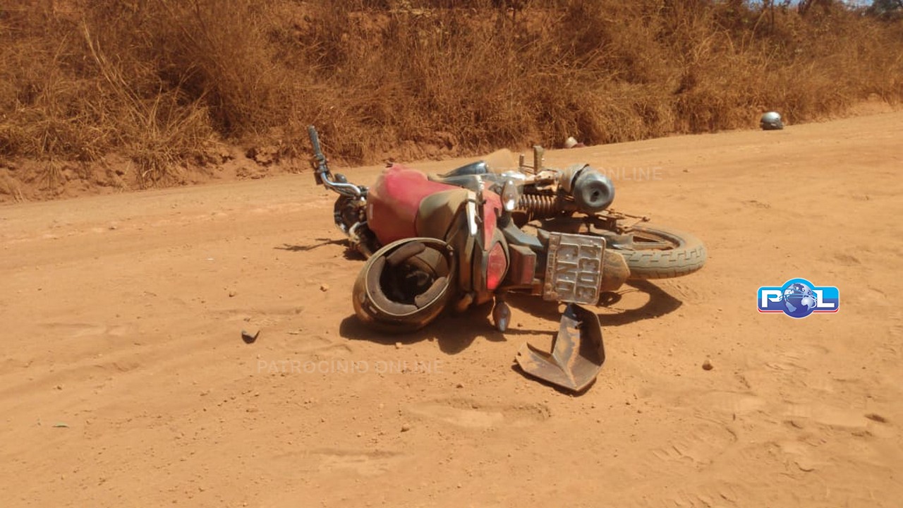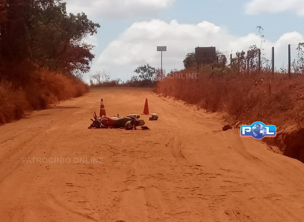 Segundo a PRE no local havia a motocicleta Honda/Titan 150, cor vermelha, tombada na pista de rolamento e o condutor socorrido pela ambulância para o Pronto Socorro Municipal em Tiros.
