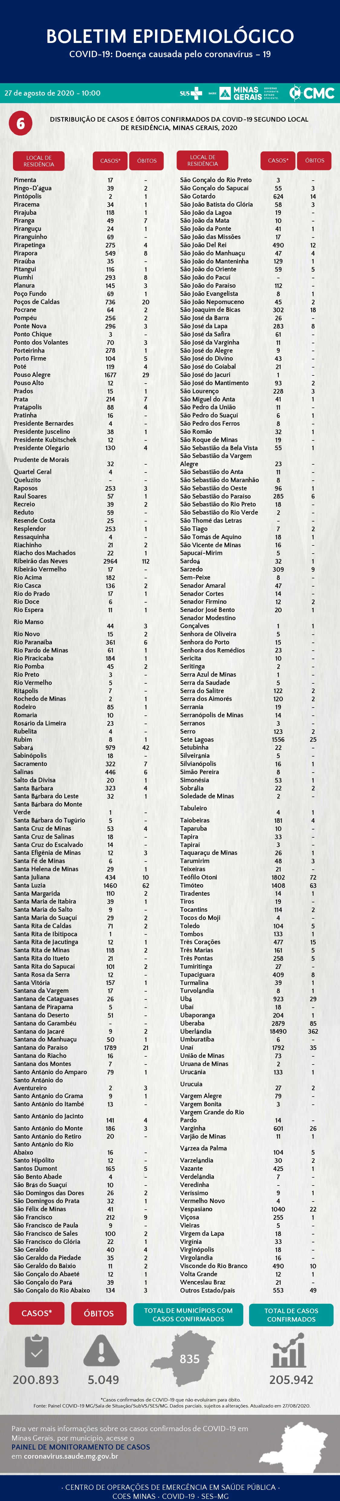 Até o momento foram 205.942 casos confirmados.