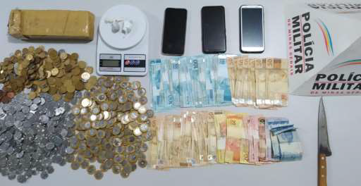 Os militares na residência do autor apreenderam grande quantia em dinheiro, celulares, balança de precisão e abordada sua amásia.