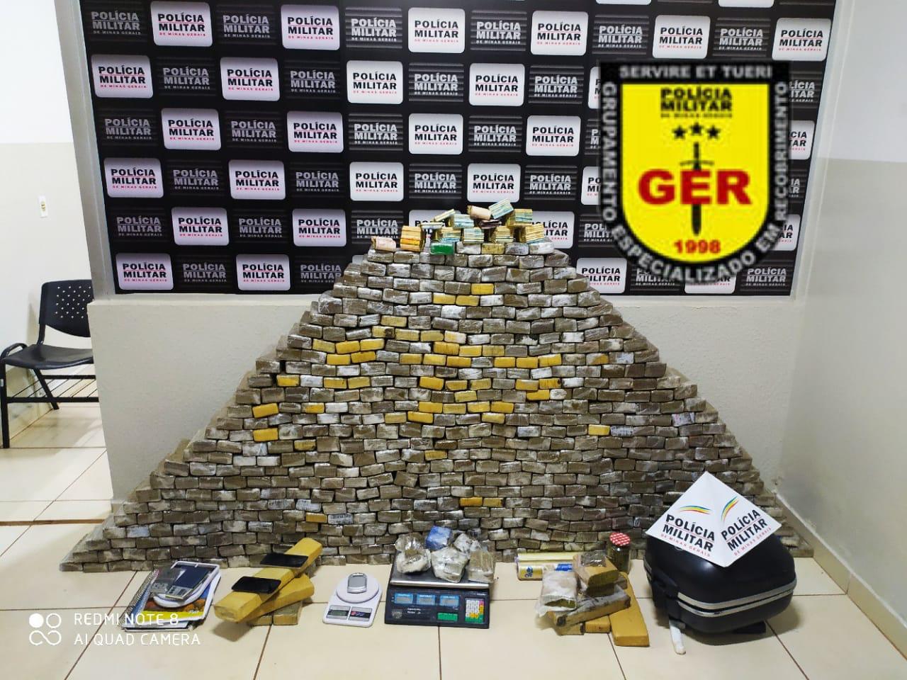 Na casa os militares abordaram uma pessoa e dentro da casa localizaram mais de 533 barras de maconha, 3 cadernos contendo anotações, 06 balanças de precisão, 02 celulares, 01 faca dentre outros materiais.